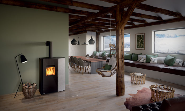 TOUS LES AVANTAGES DU BOIS ET DES GRANULES DANS UN POÊLE ESTHETIQUE ET FONCTIONNEL